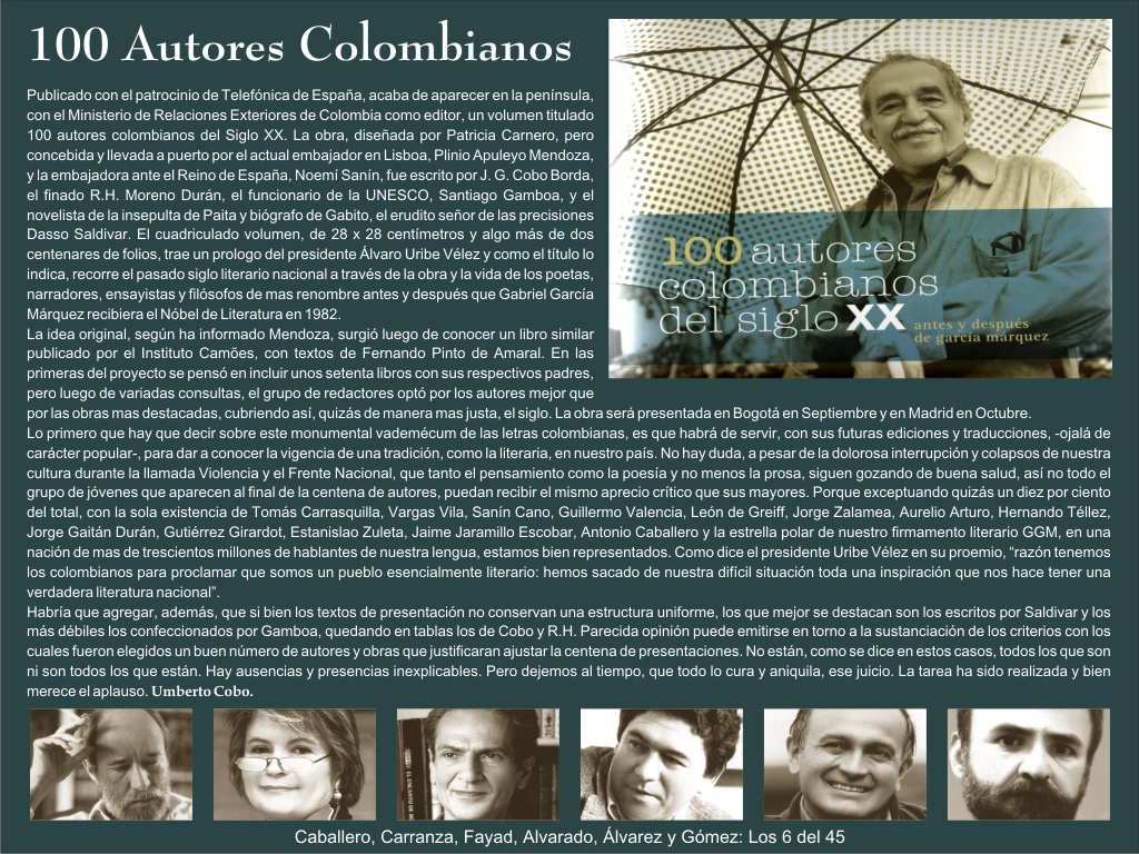 J.G. Cobo Borda, R.H. Moreno Durán y otros: Cien escritores colombianos, Madrid, 2006.